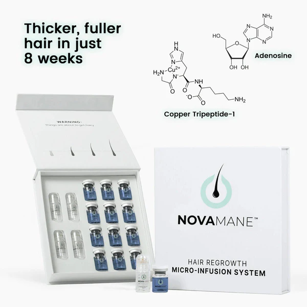 NovaMane uses medical-grade 0.5mm micro-needles to create channels in your scalp, triggering natural healing while delivering 18 clinical-grade peptides directly to follicles. This repairs fibrotic tissue, restores blood flow, and reactivates dormant roots — addressing the root cause that pills can't fix.
